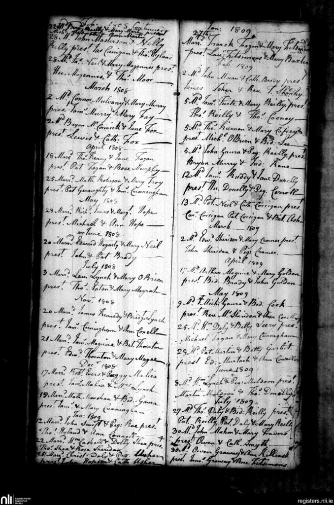 Collinstown; County of Westmeath; Diocese of Meath. Marriages, Feb. 1808 to July 1809