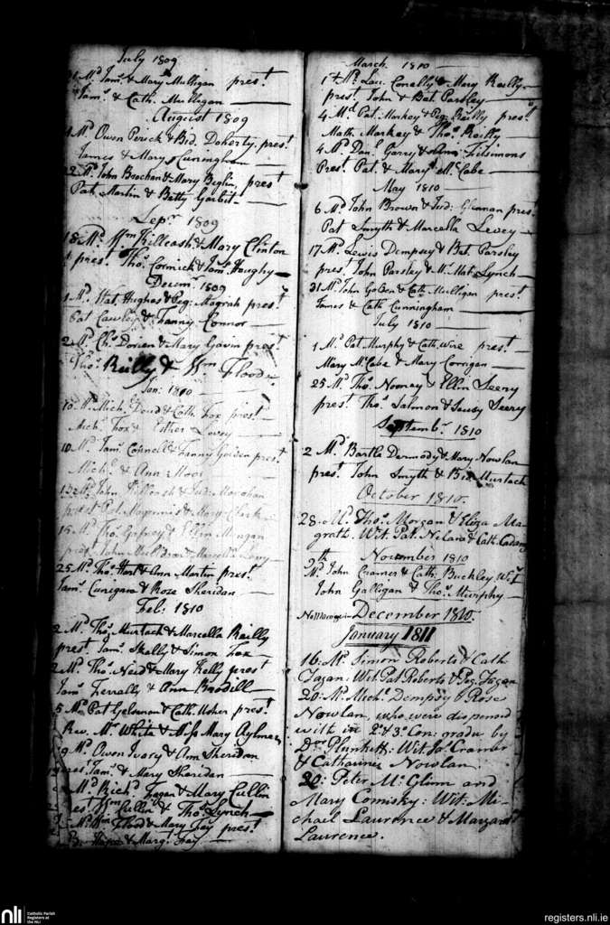 Collinstown; County of Westmeath; Diocese of Meath. Marriages, July 1809 to Jan. 1811