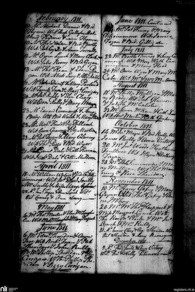 Collinstown; County of Westmeath; Diocese of Meath. Marriages, Feb. 1811 to Dec. 1811