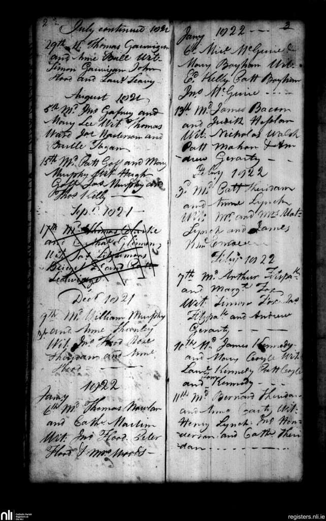 Collinstown; County of Westmeath; Diocese of Meath. Marriages, July 1821 to Feb. 1822