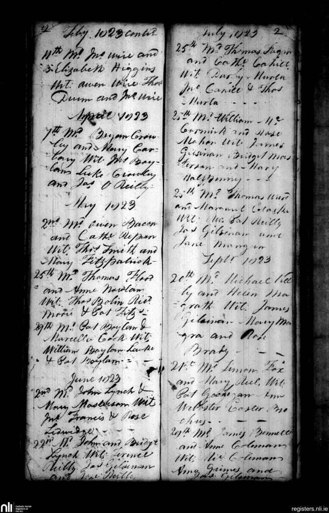 Collinstown; County of Westmeath; Diocese of Meath. Marriages, Feb. 1823 to Sep. 1823