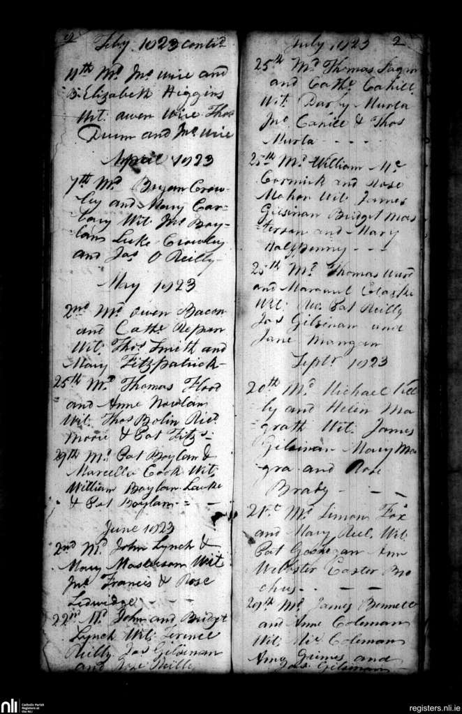 Collinstown; County of Westmeath; Diocese of Meath. Marriages, Feb. 1823 to Sep. 1823