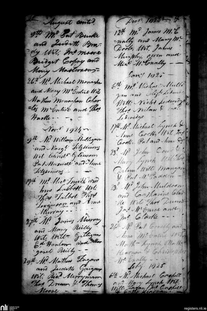 Collinstown; County of Westmeath; Diocese of Meath. Marriages, Aug. 1824 to Feb. 1825