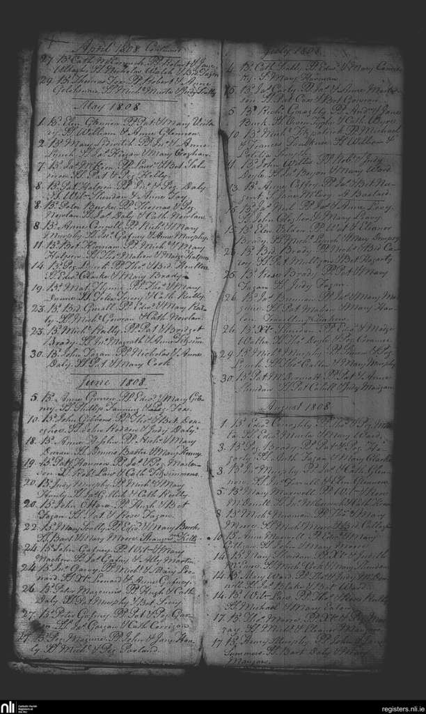 Collinstown; County of Westmeath; Diocese of Meath. Baptisms, Apr. 1808 to Aug. 1808