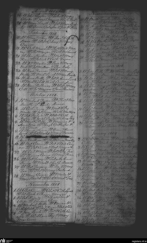 Collinstown; County of Westmeath; Diocese of Meath. Baptisms, Aug. 1808 to Jan. 1809