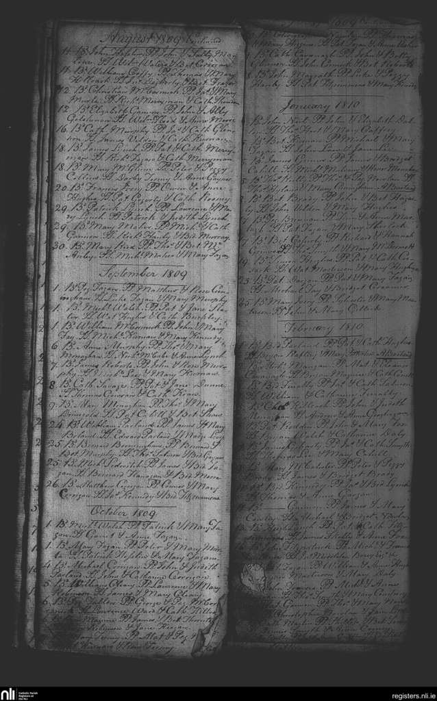 Collinstown; County of Westmeath; Diocese of Meath. Baptisms, Aug. 1809 to Feb. 1810