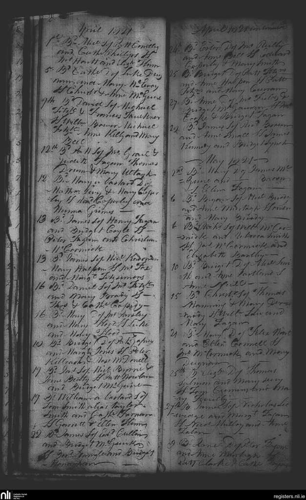 Collinstown; County of Westmeath; Diocese of Meath. Baptisms, Apr. 1821 to May 1821