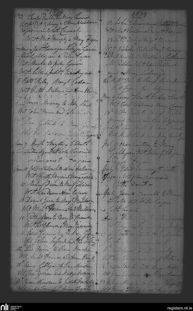 Collinstown; County of Westmeath; Diocese of Meath. Marriages, Jan. 1839 to Aug. 1839