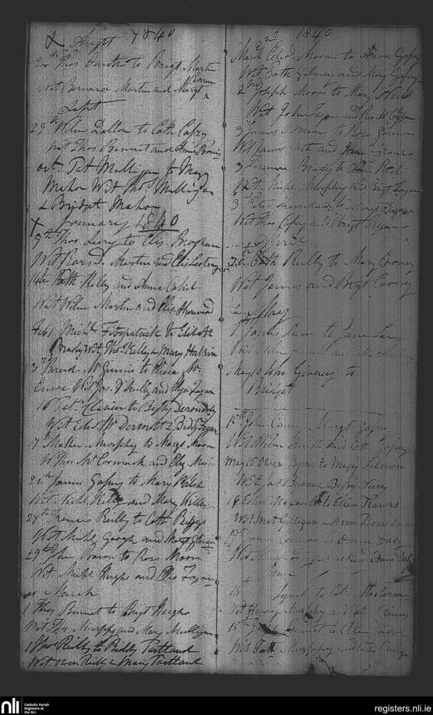 Collinstown; County of Westmeath; Diocese of Meath. Marriages, Aug. 1839 to May 1840