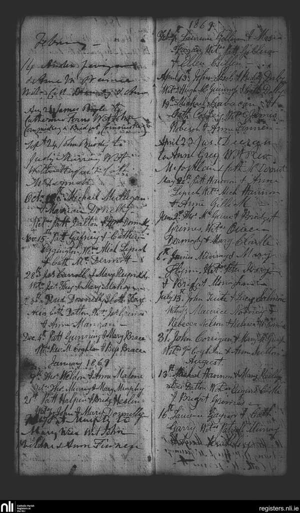 Collinstown; County of Westmeath; Diocese of Meath. Marriages, Aug. 1868 to Aug. 1869