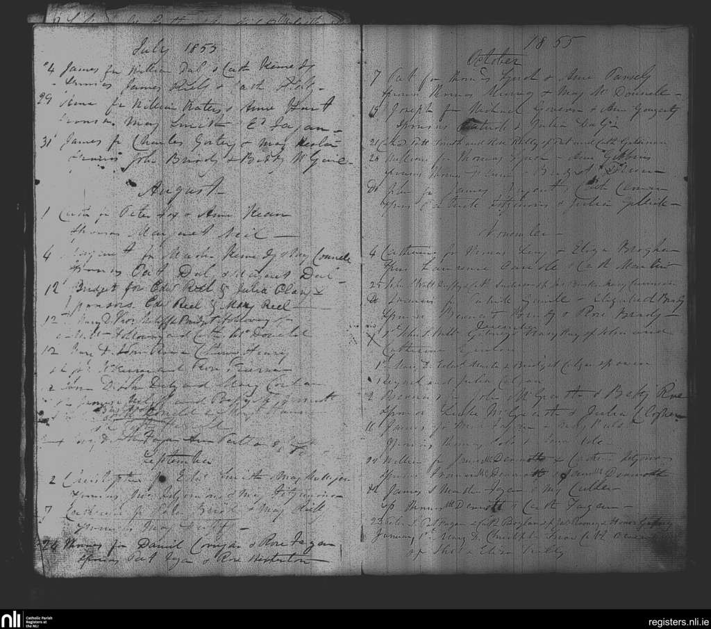 Collinstown; County of Westmeath; Diocese of Meath. Baptisms, July 1855 to Jan. 1856