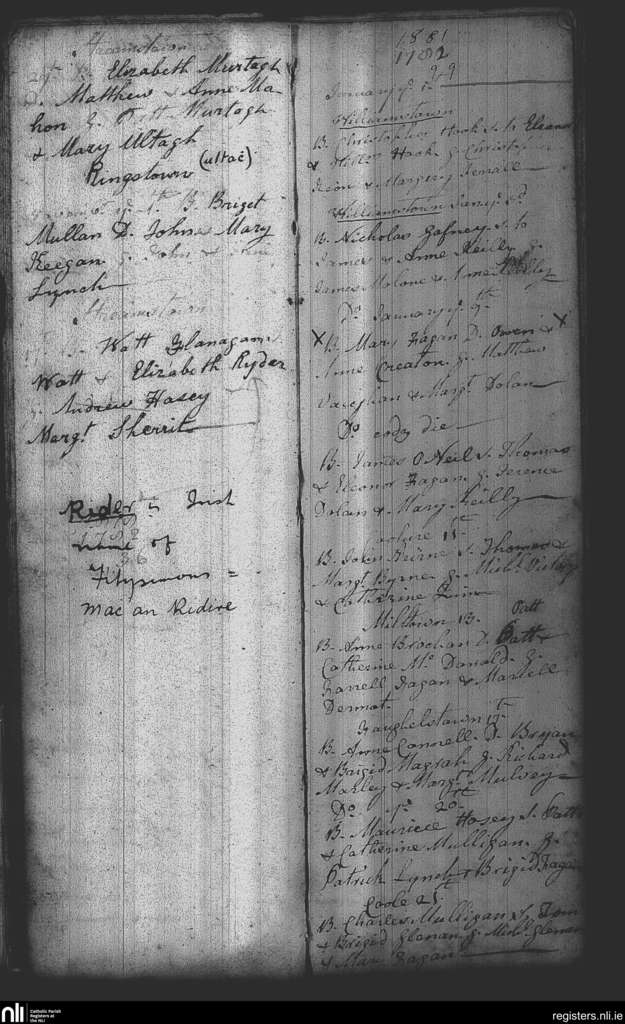 Mayne; County of Westmeath; Diocese of Meath. Baptisms, Jan. 1782 to June 1783