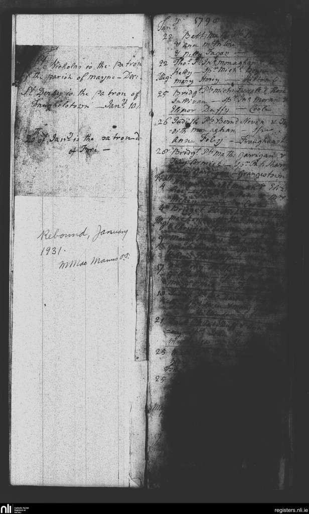 Mayne; County of Westmeath; Diocese of Meath. Baptisms, Jan. 1798 to Feb. 1798