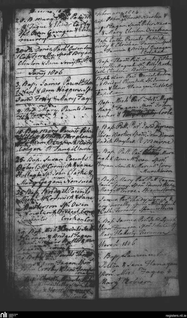 Mayne; County of Westmeath; Diocese of Meath. Baptisms, Dec. 1805 to Mar. 1806