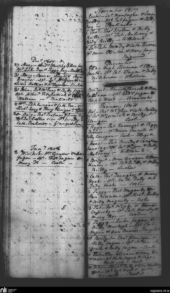Mayne; County of Westmeath; Diocese of Meath. Baptisms, Nov. 1807 to Jan. 1808