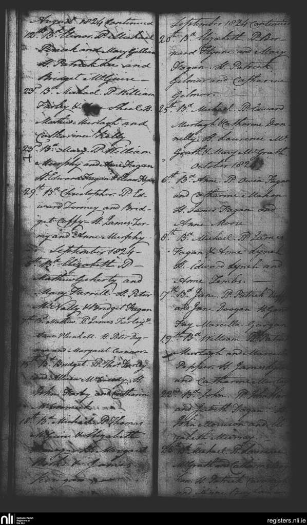 Mayne; County of Westmeath; Diocese of Meath. Baptisms, Aug. 1824 to Oct. 1824