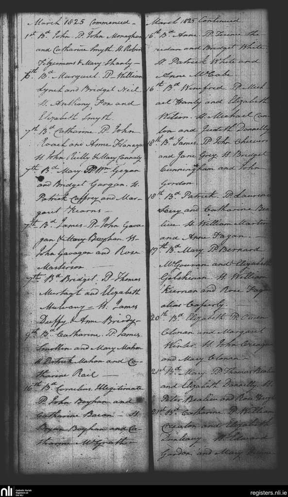 Mayne; County of Westmeath; Diocese of Meath. Baptisms, Mar. 1825