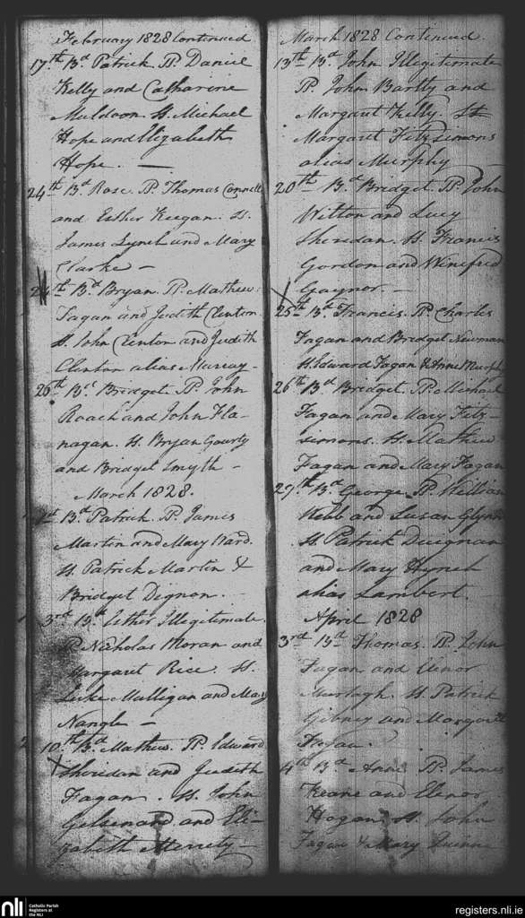 Mayne; County of Westmeath; Diocese of Meath. Baptisms, Feb. 1828 to Apr. 1828