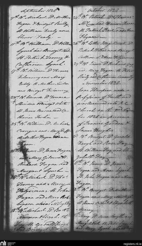 Mayne; County of Westmeath; Diocese of Meath. Baptisms, Sep. 1828 to Dec. 1828