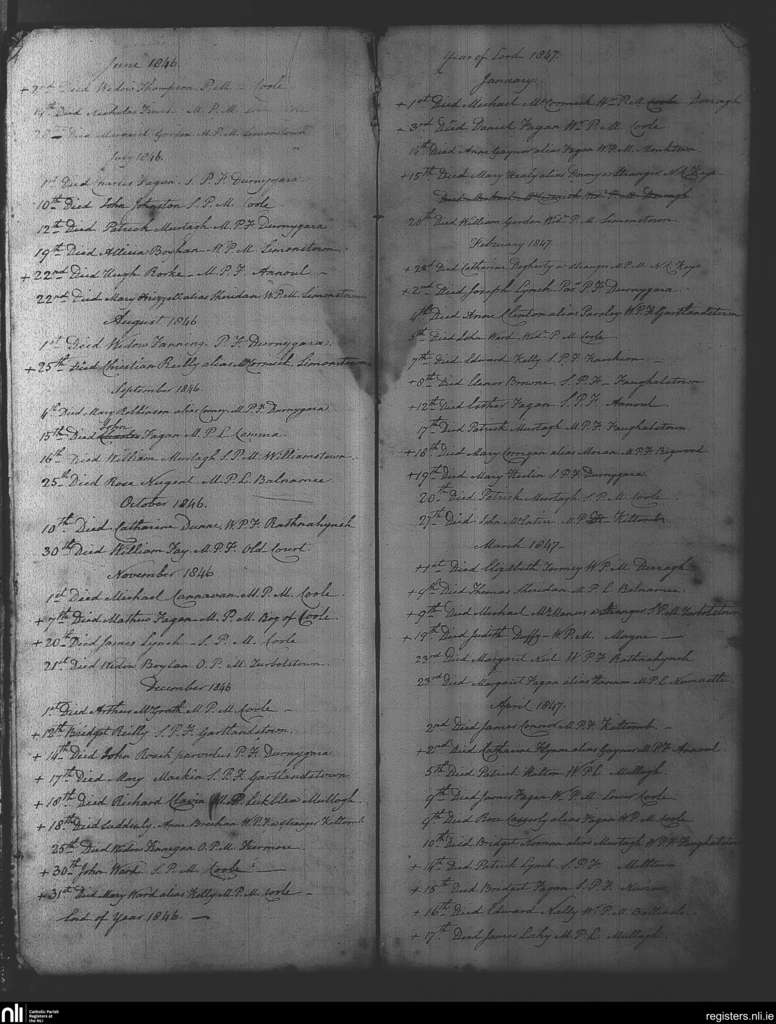 Mayne; County of Westmeath; Diocese of Meath. Deaths, June 1846 to Apr. 1847