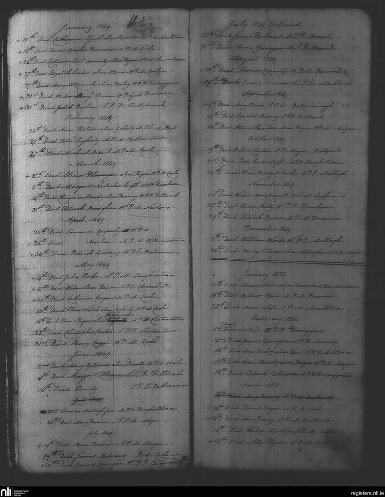 Mayne; County of Westmeath; Diocese of Meath. Deaths, Jan. 1849 to Mar. 1850