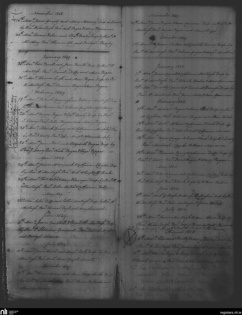 Mayne; County of Westmeath; Diocese of Meath. Marriages, Nov. 1848 to Sep. 1850