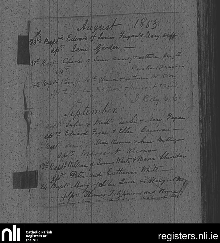 Mayne; County of Westmeath; Diocese of Meath. Baptisms, Aug. 1863 to Sep. 1863