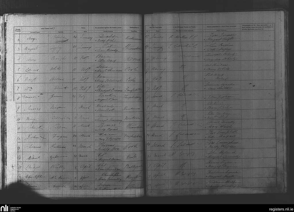 Mayne; County of Westmeath; Diocese of Meath. Baptisms, Jan. 1867 to Apr. 1867