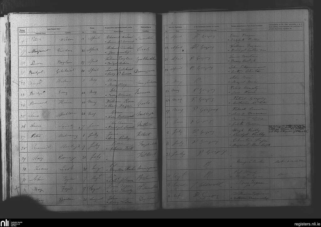 Mayne; County of Westmeath; Diocese of Meath. Baptisms, Apr. 1867 to Sep. 1867