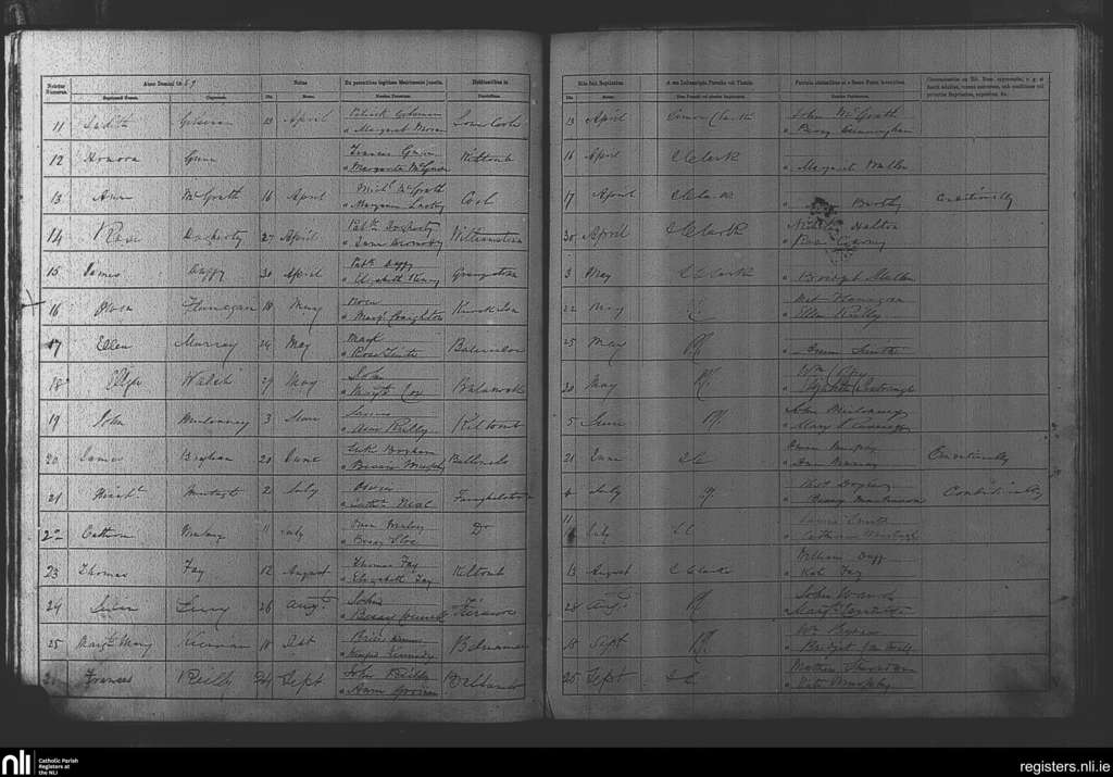 Mayne; County of Westmeath; Diocese of Meath. Baptisms, Apr. 1869 to Sep. 1869