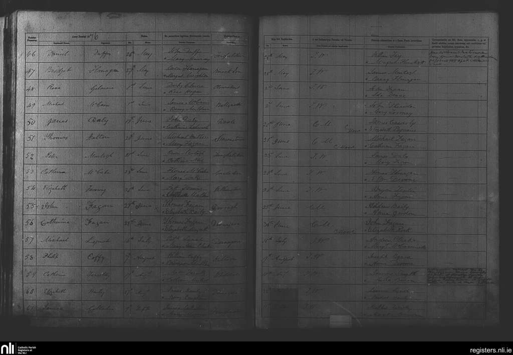 Mayne; County of Westmeath; Diocese of Meath. Baptisms, May 1876 to Sep. 1876