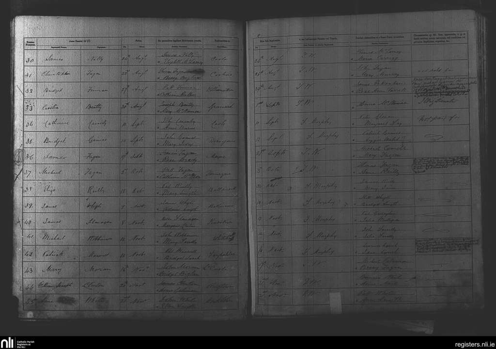 Mayne; County of Westmeath; Diocese of Meath. Baptisms, Aug. 1880 to Nov. 1880