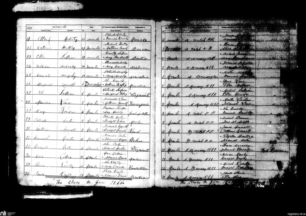 Rock and Meelin; County of Cork; Diocese of Cloyne. Baptisms, Nov. 1866 to Dec. 1866