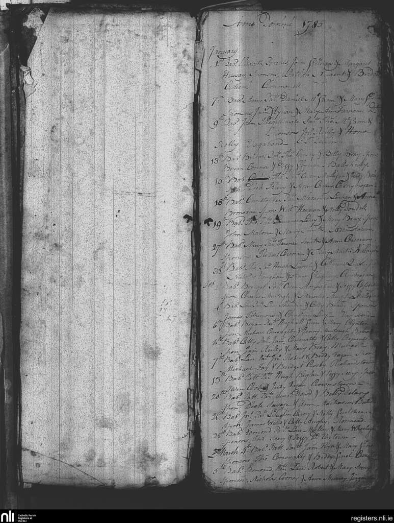 Delvin; County of Westmeath; Diocese of Meath. Baptisms, Jan. 1785 to Mar. 1785