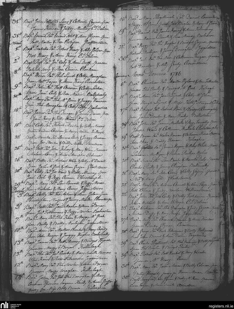 Delvin; County of Westmeath; Diocese of Meath. Baptisms, Oct. 1785 to Jan. 1786