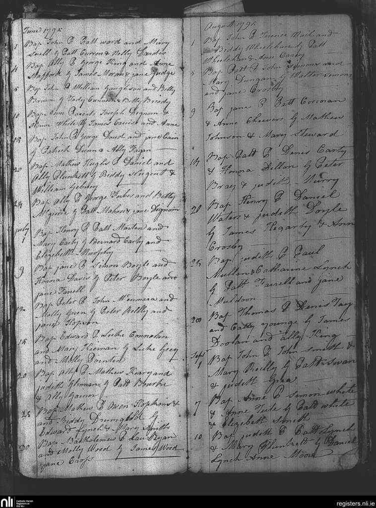 Delvin; County of Westmeath; Diocese of Meath. Baptisms, June 1795 to Sep. 1795