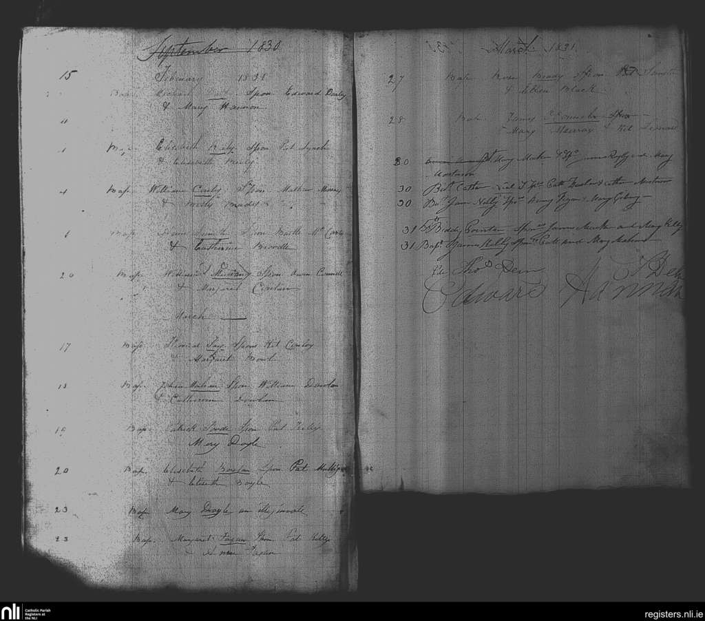 Delvin; County of Westmeath; Diocese of Meath. Baptisms, Feb. 1831 to Mar. 1831