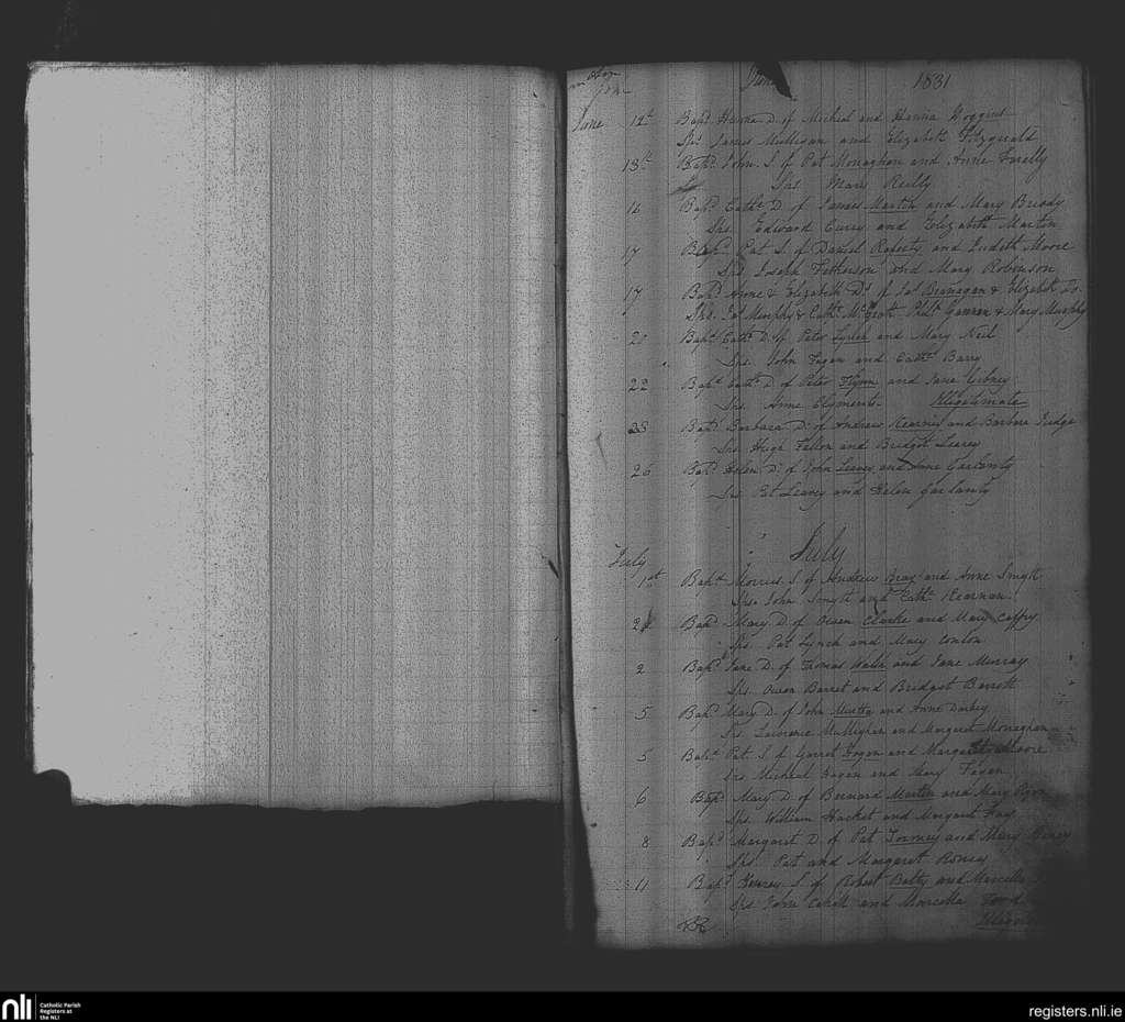 Delvin; County of Westmeath; Diocese of Meath. Baptisms, June 1831 to July 1831