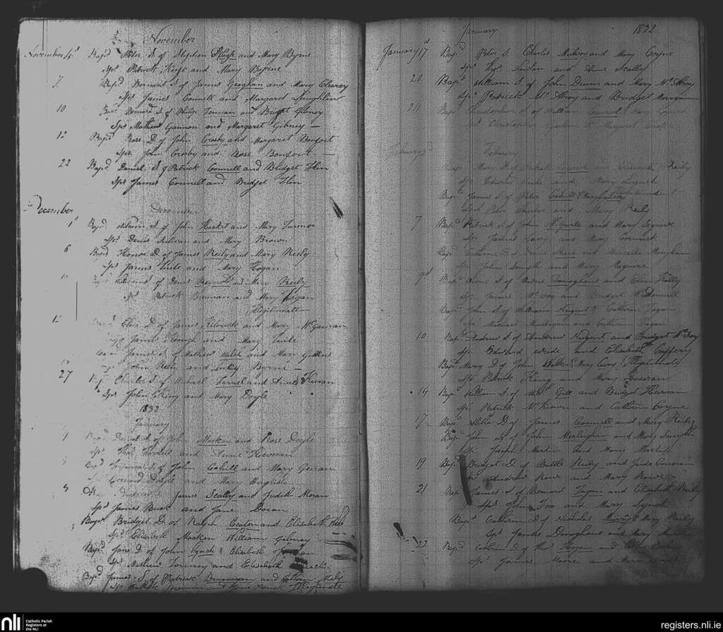 Delvin; County of Westmeath; Diocese of Meath. Baptisms, Nov. 1831 to Feb. 1832