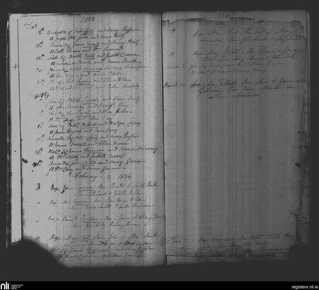 Delvin; County of Westmeath; Diocese of Meath. Baptisms, Dec. 1833 to Apr. 1834