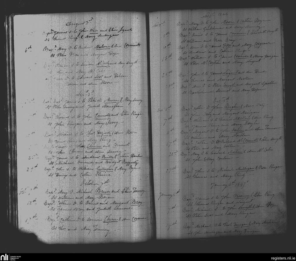 Delvin; County of Westmeath; Diocese of Meath. Baptisms, Aug. 1846 to Jan. 1847