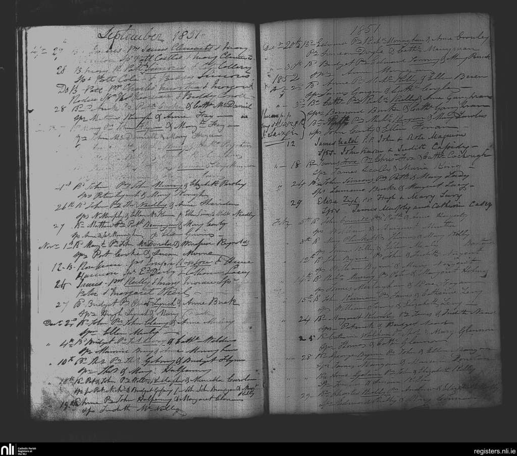 Delvin; County of Westmeath; Diocese of Meath. Baptisms, Sep. 1851 to Feb. 1852