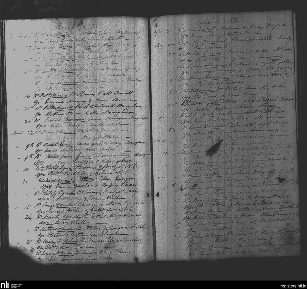 Delvin; County of Westmeath; Diocese of Meath. Baptisms, Mar. 1852 to June 1852