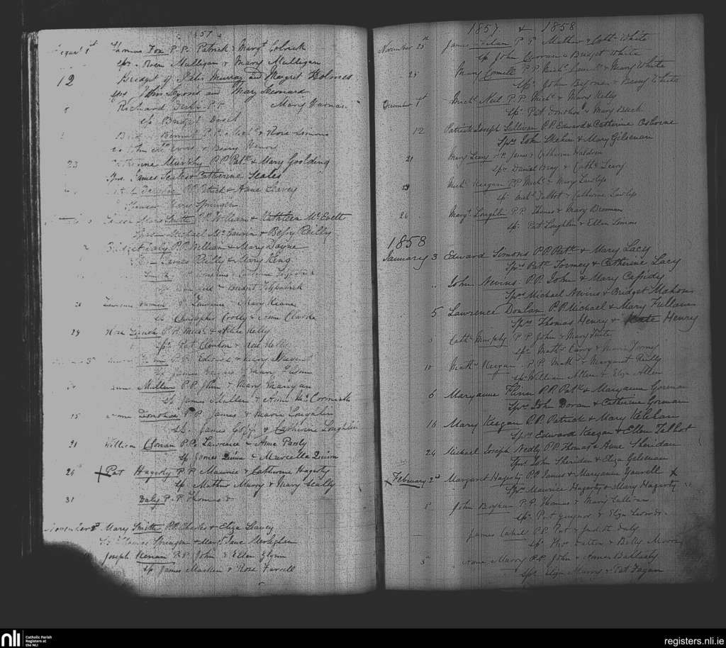 Delvin; County of Westmeath; Diocese of Meath. Baptisms, Aug. 1857 to Feb. 1858