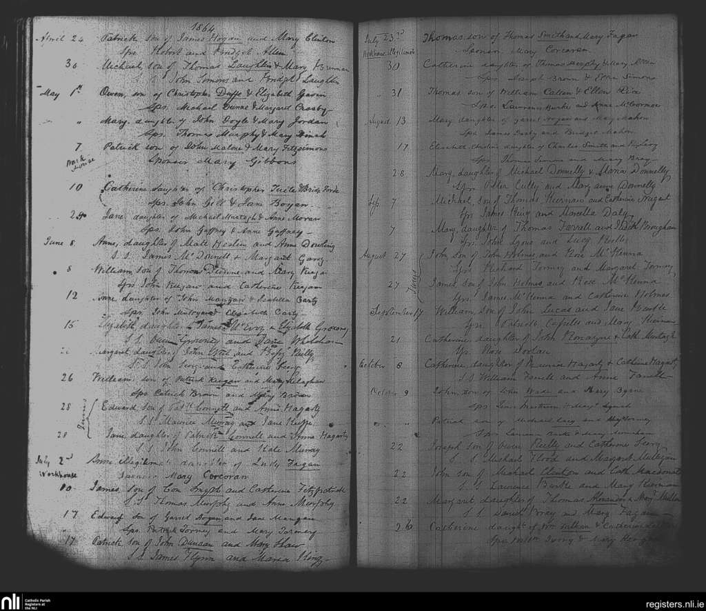 Delvin; County of Westmeath; Diocese of Meath. Baptisms, Apr. 1864 to Oct. 1864