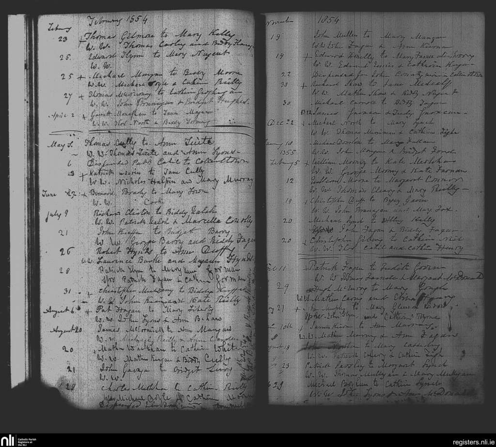 Delvin; County of Westmeath; Diocese of Meath. Marriages, Feb. 1854 to Aug. 1855