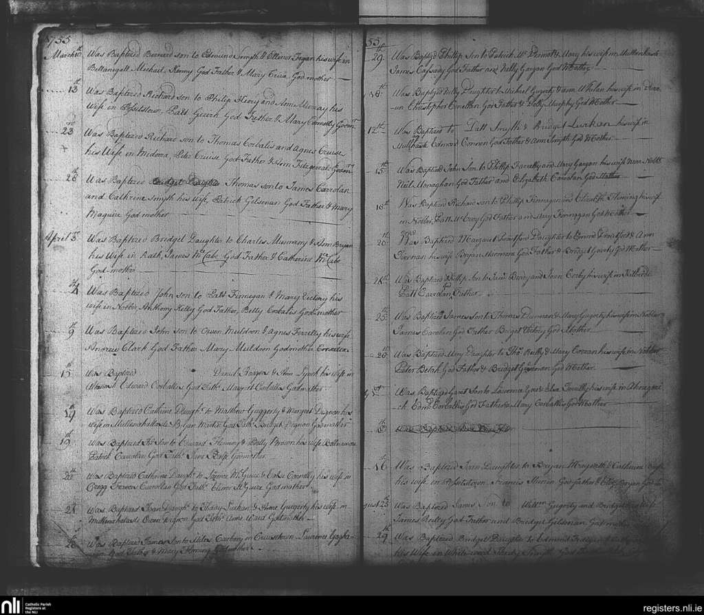 Nobber; County of Meath; Diocese of Meath. Baptisms, Mar. 1755 to Aug. 1755