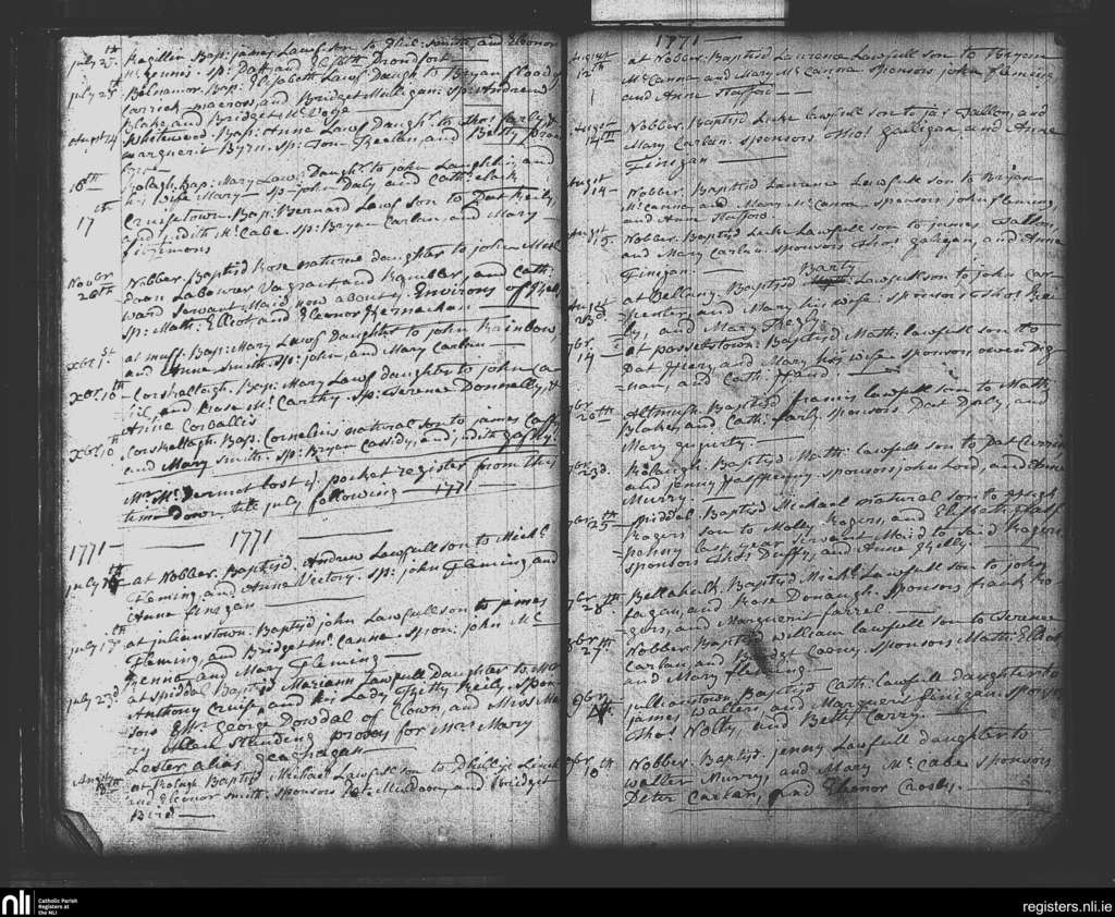 Nobber; County of Meath; Diocese of Meath. Baptisms, July 1770 to Nov. 1771