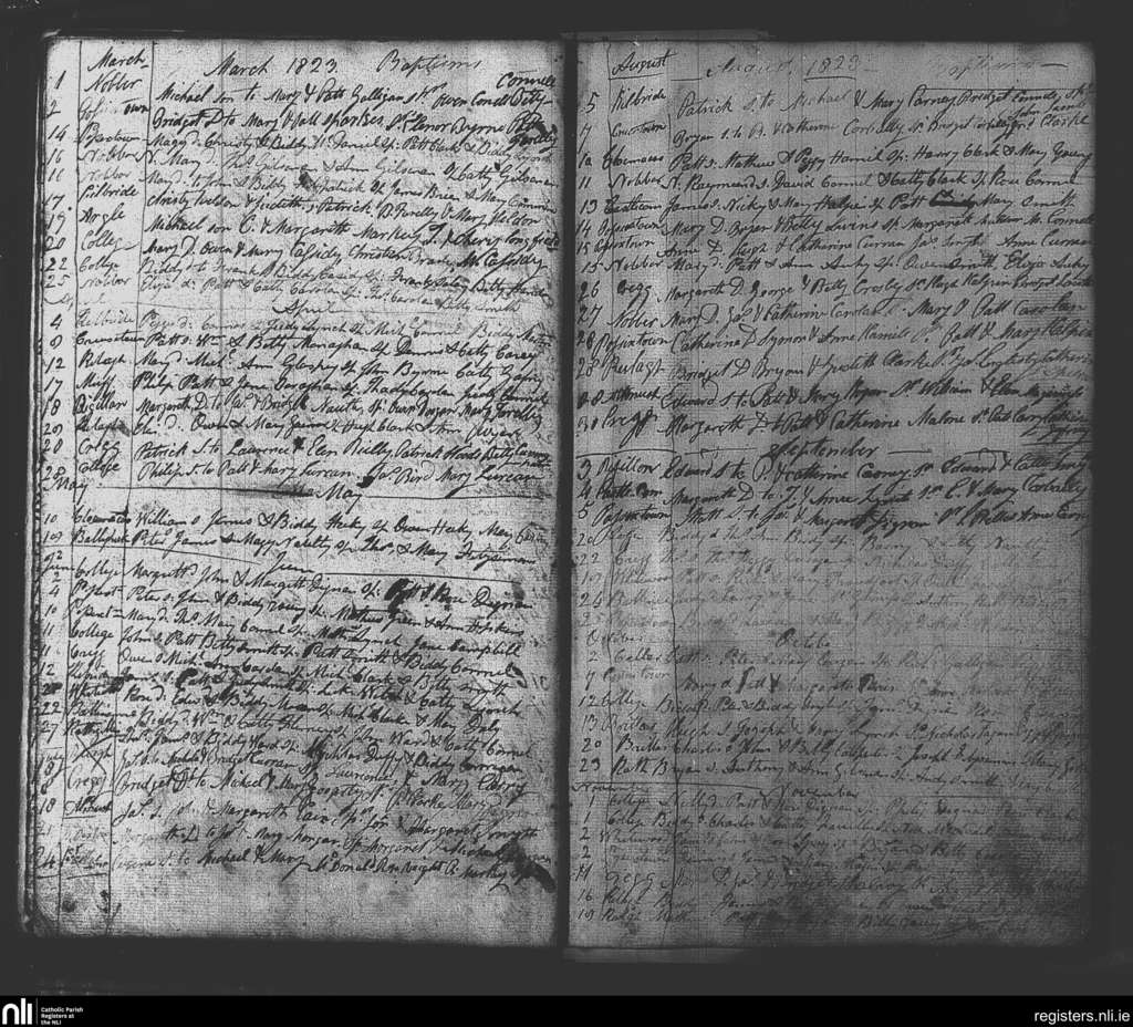Nobber; County of Meath; Diocese of Meath. Baptisms, Mar. 1823 to Nov. 1823