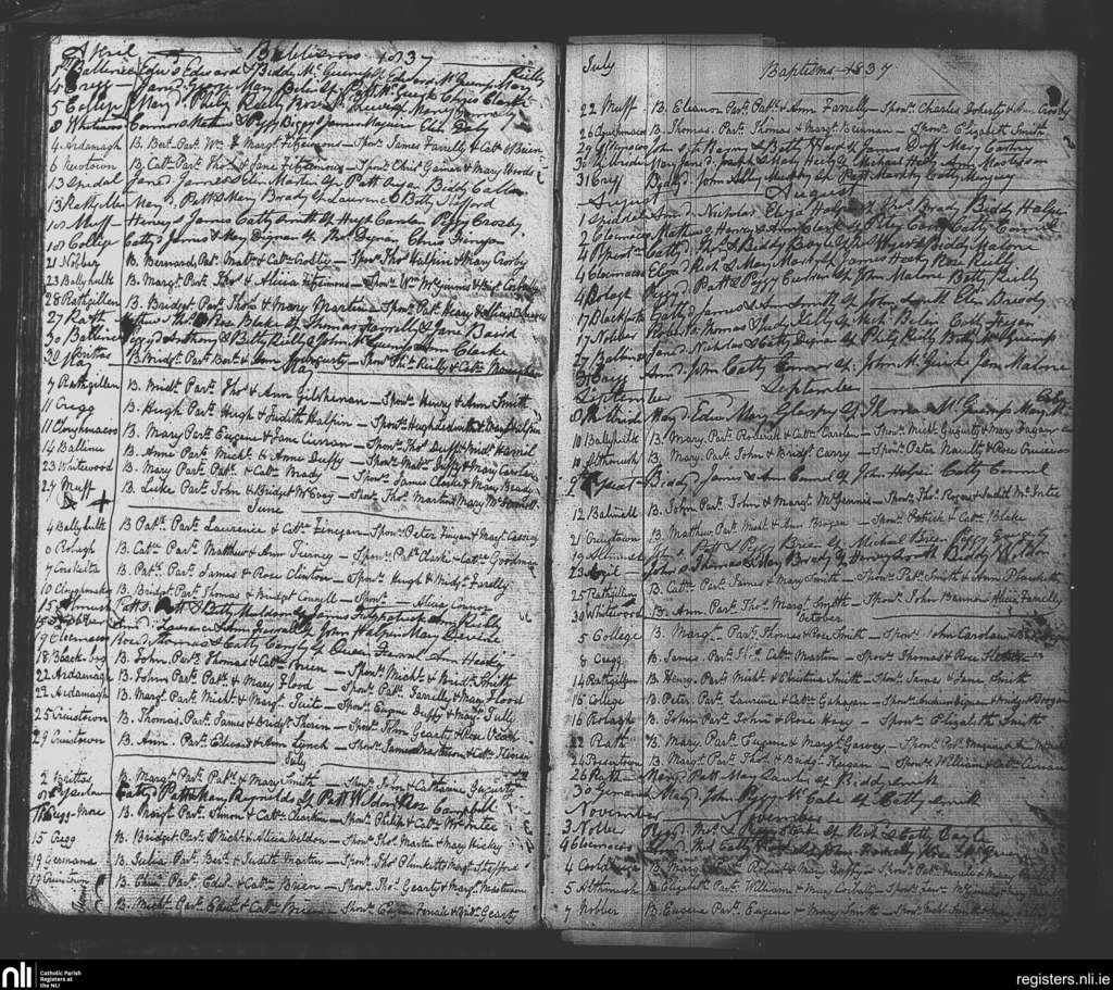 Nobber; County of Meath; Diocese of Meath. Baptisms, Apr. 1837 to Nov. 1837